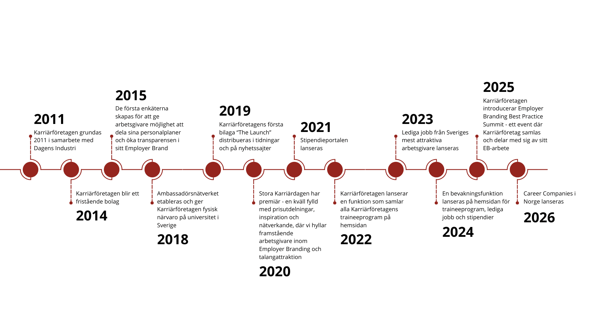 Sedan 2011 presenterar Karriärföretagen varje år Sveriges mest attraktiva arbetsgivare för studenter och Young Professionals, där de utvalda får titulera sig som ett Karriärföretag under ett år. Initialt krävs att arbetsgivaren lever upp till våra grundkriterier samt passerar en urvalsprocess. I processen granskar och säkerställer expertpanelen att arbetsgivarna uppfyller det som krävs och att man bedriver ett högkvalitativt arbete för att vara en attraktiv arbetsgivare ur flera aspekter. Vår meriterade jury väljer sen ut de som blir ett Karriärföretag.